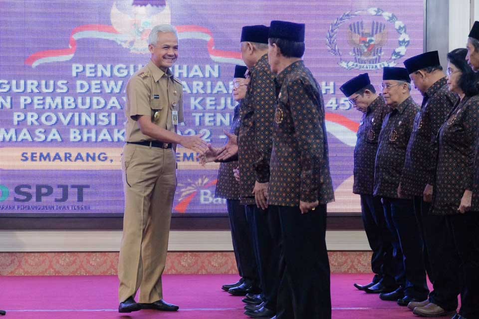Pernyataan itu disampaikan Ganjar usai mengukuhkan Pengurus Dewan Harian Daerah Badan Pembudayaan Kejuangan 45 (DHD 45) Provinsi Jawa Tengah masa bakti 2022-2027, di Grhadhika Bhakti Praja, Senin (26/12/2022).