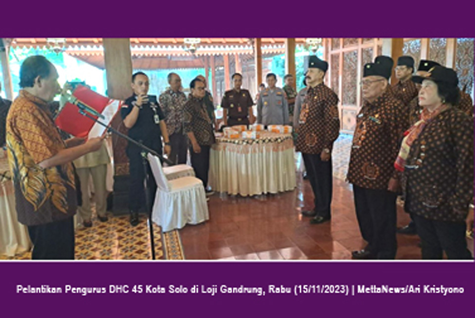 Kepengurusan Dewan Harian Cabang (DHC) 45 Kota Solo periode 2022-2027 terbentuk secara resmi. Susunan pengurus dengan Ketua Sri Baskoro, dilantik di rumah dinas Wali Kota Solo, Loji Gandrung, Rabu (15/12/2023).